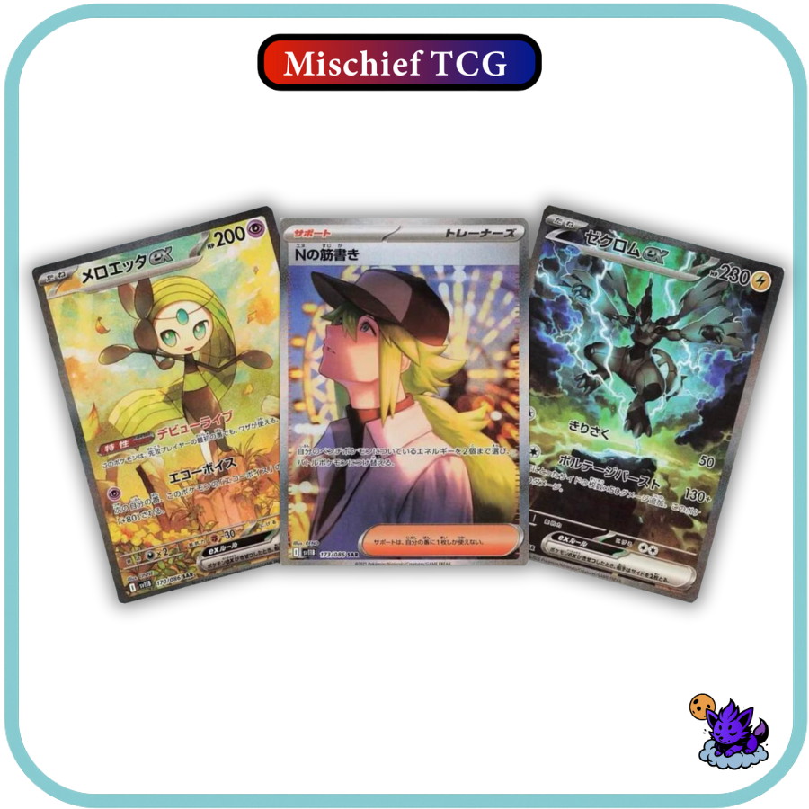 Experience an Electrifying showcase of power with Japanese Black Bolt! With stunning SIR features from Zekrom, Kyurem, Genesect, Meloetta, N, and many many more.
