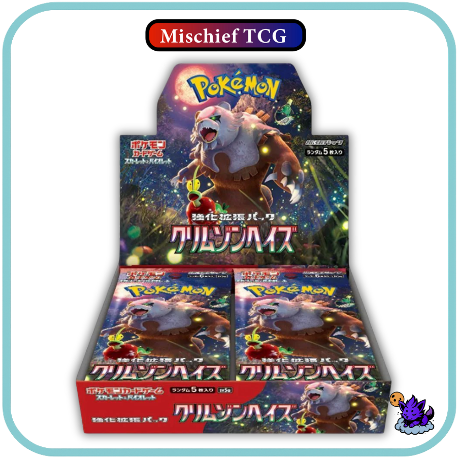 Experience the Wonder of Japanese Crimson Haze! With Stunning Arts of Fan Favorite Pokemon Such as the ever Cute Eevee IR, the Enchanting Perrin SIR and Lana SIR, the Mischievous Blood Moon Ursaluna SIR or the Magnificent Greninja ex SIR! All This and More Awaits you in Japanese Crimson Haze!