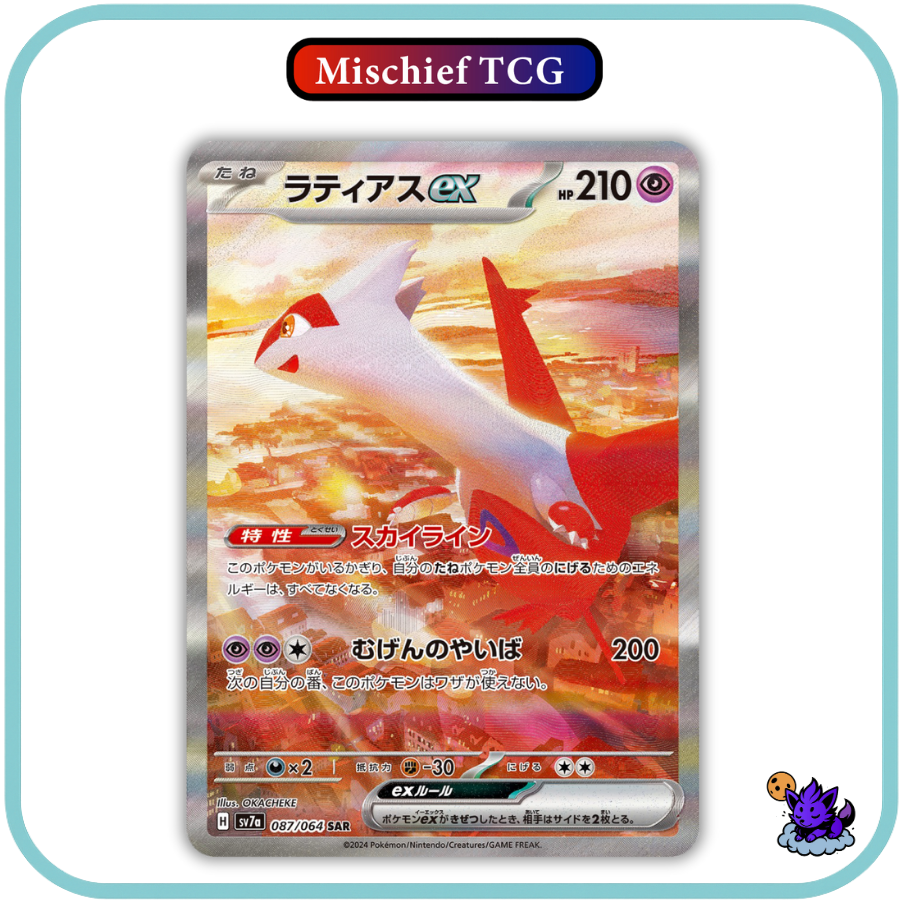 Within the Warm Beaches of Paldea Legends Arise in the All New Japanese Paradise Dragona! Experience Fan Favorite Pokemon Tuned into Stunning SIR's Such as the Majestic Latias ex, Playful Exeggutor ex and much much more!